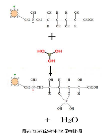 CH-99樹(shù)脂是一款去除水溶液中硼及其鹽的選擇性離子交換樹(shù)脂,具有與硼能夠生成絡(luò )合物的功能基團多羥基胺(Polyhydroxy amine),骨架為一種苯乙烯和二乙烯苯交聯(lián)的樹(shù)脂,多羥基能夠與硼絡(luò )合,達到選擇性吸附硼的目的。