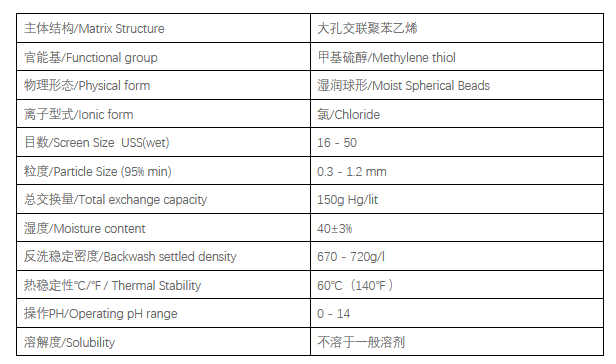 特種鉑鈀吸附樹(shù)脂CH-97是一款含有附著(zhù)甲基硫醇聚苯乙烯共聚物架構的非常耐用的大孔型樹(shù)脂,可通過(guò)形成穩定的硫醇鹽來(lái)選擇性吸附貴金屬鉑鈀。